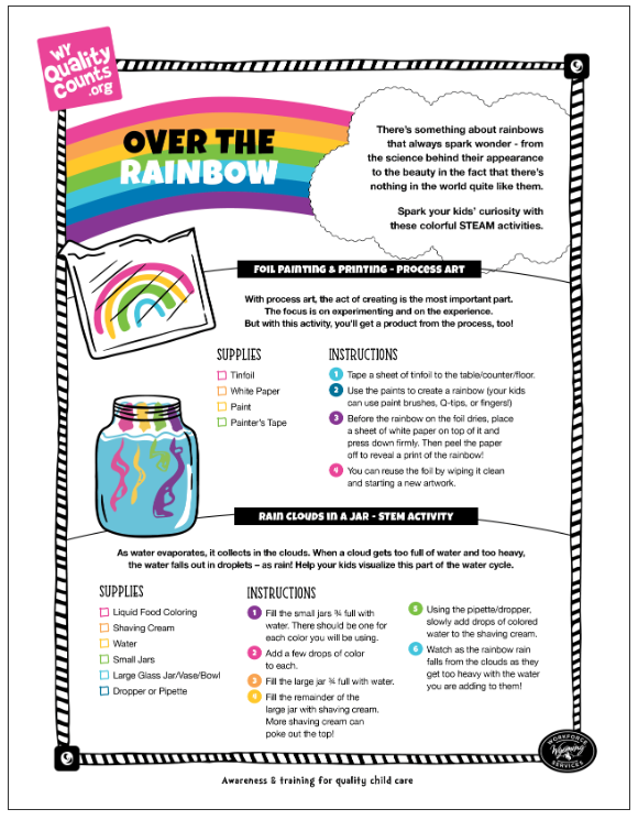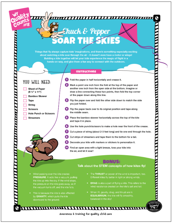 Kids grow all day, every day. Give them a bright future with brain-boosting activities! As your ally in continuous learning, WY Quality Counts has created a selection of FREE and fun activity printables for you to share with your family.