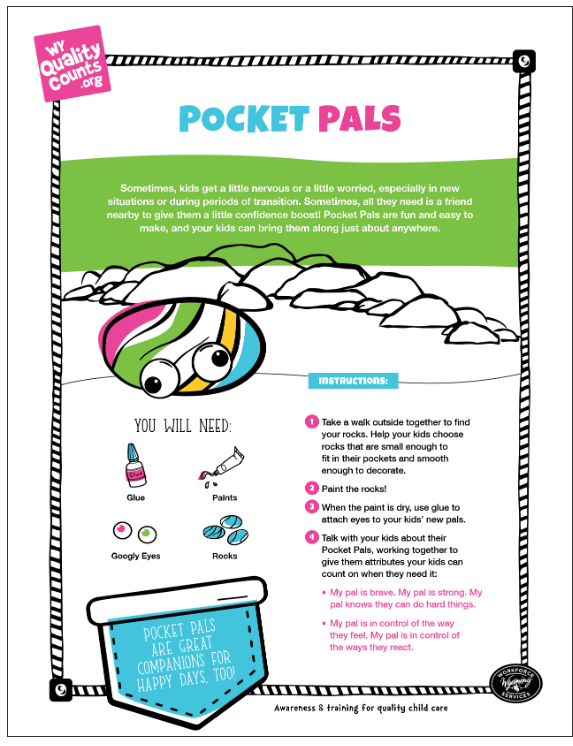 Aren’t there always rocks in your kids’ pockets anyway? With a pocket pal, your kids can intentionally create a friend to keep with them. Knowing their pal is there can help your kids’ confidence when they need a little boost! Download the Activity Sheet