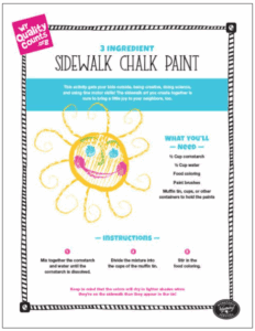 This activity gets your kids outside, being creative, doing science, and using fine motor skills! The sidewalk art you create together is sure to bring a little joy to your neighbors, too. Download the Activity Sheet