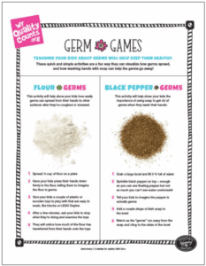 Teaching your kids about germs will help keep them healthy. These quick and simple activities are a fun way to help your kids visualize how germs spread and how washing hands with soap can make the germs go away! Download the Activity Sheet