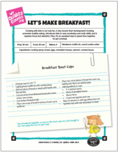 Mealtime routines help build strong family relationships and healthy relationships with food. You can make the most of your time together and get your kids into healthy eating habits from the start by cooking together! Try this easy breakfast recipe, giving your kids different steps to help with. Download the Activity Sheet