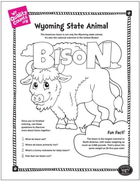 Did you know? The Bison is the official animal of Wyoming! It’s also the national mammal of the United States. Download and print this free coloring page to learn more about Bison! Download the Activity Sheet