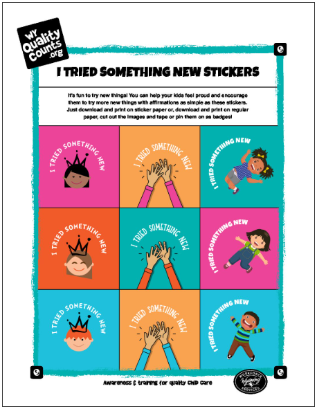 This year, celebrate trying new things together with our stickers! At the end of each month, check in with your kids: How do they feel? Did they try anything new? What are they going to try next month? As you encourage your kids to try new things, you’re helping to build their confidence and the courage to take on new situations! Download the Activity Sheet