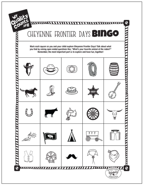 Did you know? Cheyenne Frontier Days prides itself as the “World’s Largest Outdoor Rodeo and Western Celebration.” Before you head to Cheyenne Frontier Days this year, download our FREE Bingo Page! Download the Activity Sheet