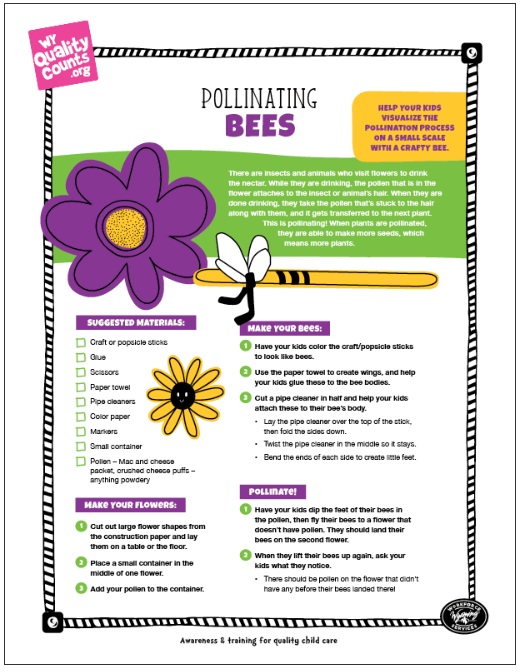 Do your kids have an understanding of how bees pollinate flowers? You can show them! Make your own bees, flowers, and pollen and learn together about pollination and the magic of bees. Download the Activity Sheet