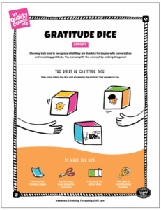 Make these dice together and turn expressing gratitude into a game! When you simplify the idea of being thankful, your kids will easily recognize all the things they are grateful for. Download the Activity Sheet