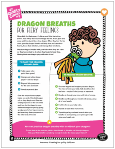 This is like mindful breathing, plus a craft, and playing dress-up. Practicing dragon breaths will help your kids (and you!) recognize and calm the fire in their bellies when they start to become upset, and learn how to regulate their big emotions. Download the Activity Sheet