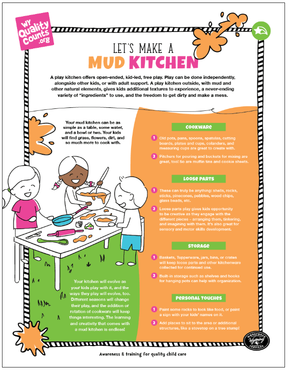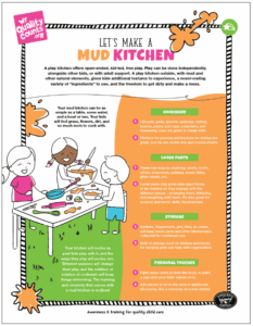 Open-ended, kid-led, free play, and it’s outside? There’s nothing better. Your mud kitchen can be super simple or have lots of tools, and either way your kids will create and play and learn for hours. Download the Activity Sheet