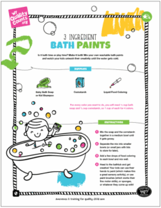 It’s not a mess – it’s art! Watch your kids unleash their creativity and have the most colorful bath time they’ve ever had. Download the Activity Sheet