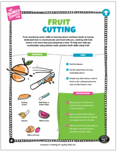 Help your kids learn their first knife-handling skills, practice fine motor skills, and learn about nutritious foods, all while you share a snack. Download the Activity Sheet