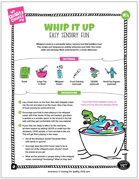 Whipped cream is a great sensory tool. Add a little imagination and you have an easy, anytime indoor kid activity! Download the Activity Sheet