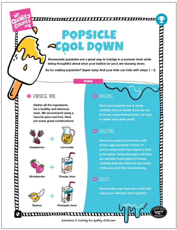 When it’s hot outside or you’re just looking for a cold and healthy treat, popsicles are the way to go. Your kids will love helping with this easy recipe! Download the Activity Sheet