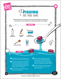 There’s nothing like a good bath time game they keep bath time engaging, always include sensory stimulation, and – when you throw in letters, spelling, and name recognition – they can be an early learning experience, too! Download the Activity Sheet