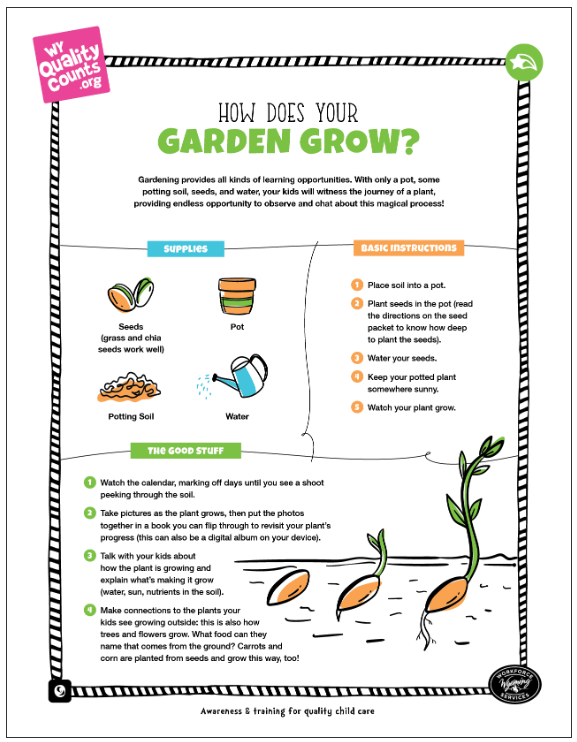Planting seeds in dirt is just the first step to growing a garden. What happens next is where the learning is! Get your hands dirty and show your kids the magic of how things grow. Download the Activity Sheet