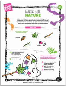 Using paintbrushes made from natural materials provides a whole new way to create. The textures are different, the brush strokes are different, and the experience will get your kids thinking in new creative ways! Download the Activity Sheet