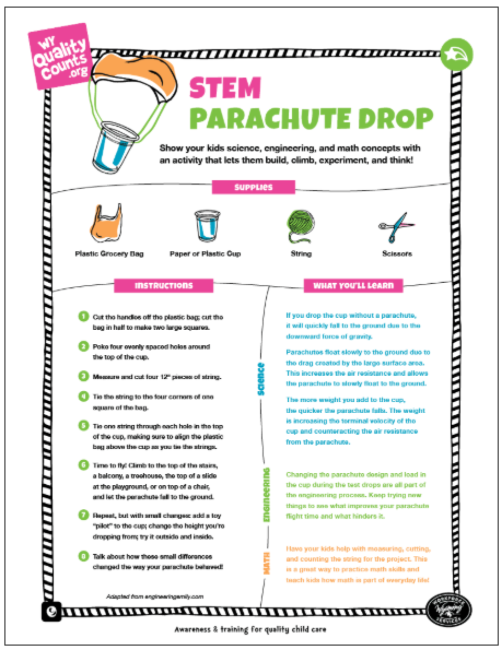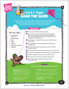 Talk with your kids about velocity, everyday math concepts, engineering and science in one fun activity about flight, gravity, and how to use an old plastic bag. Download the Activity Sheet