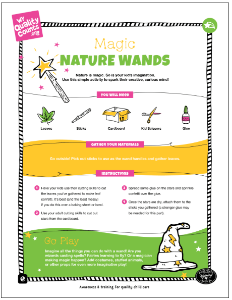 Everything about nature sparks curiosity! Tap into your kids’ natural inclination to pick up sticks and bring them home with a fun and colorful craft that will get those sticks back outside. Download the Activity Sheet