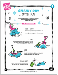 These simple activities will keep your kids engaged (almost) all the way to the new year. Each activity supports the Domains of Development and will help wrap up a great year together. Download the Activity Sheet
