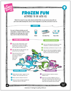 Activities with ice are versatile, they invite creative thinking and conversation, and they’re a great way to cool down on a hot day! If you plan ahead and pre-make your ice, you’ll be ready with an engaging activity right when you need it. Download the Activity Sheet