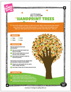 It’s autumn! Help your kids recognize the changing seasons by going outside, talking about what you see, and creating art to match! Download the Activity Sheet