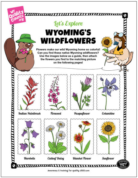 Flowers make our wild Wyoming home so colorful! Can you find these native Wyoming wildflowers? Use the images below as a guide, then attach the flowers you find to the matching picture on the following pages! Download the Activity Sheet
