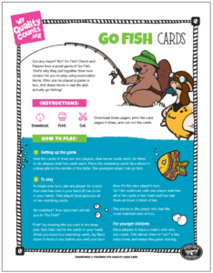 Got any maps? No? Go Fish! Chuck and Pepper love a good game of Go Fish. That’s why they put together their own version for you to play using exploration items. After you’ve played a game or two, find these items in real life and actually go fishing! Download the Activity Sheet